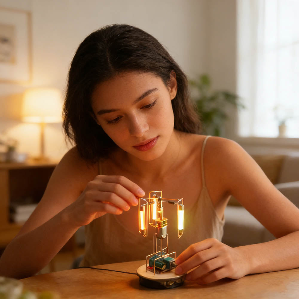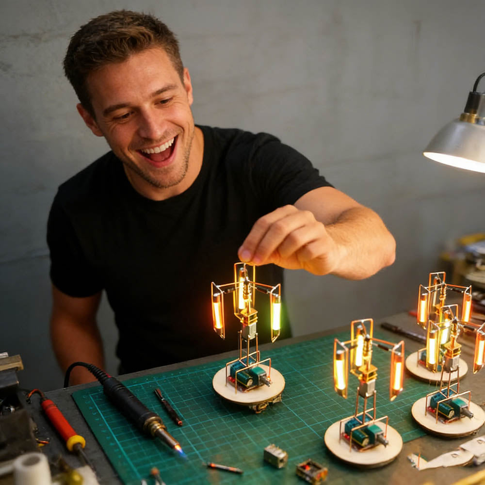 Experience hands-on assembly with this open-frame electronic kit. Every component is visible and requires manual soldering, delivering a rewarding DIY process. Create a glowing tower lamp that combines technology, craftsmanship, and immersive building satisfaction.