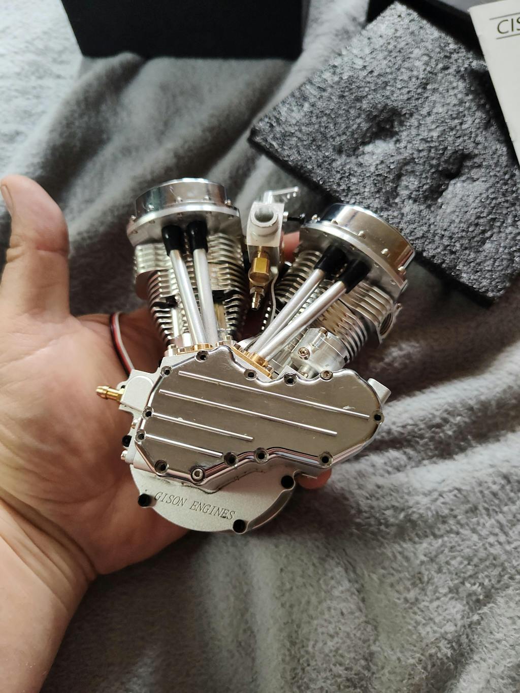 .Impressive Simulation: The highly simulated classic look and elegant silver appearance recreates how a real motorcycle engine looks. Upgrade based on the original design to improve performance and reliability represents the most significant feature of motorcycles. .Reliable structure: Designed with OHV (overhead valve) bottom camshaft top rod air distribution structure, two cylinder cylinders are at a 45° angle, each cylinder has two valves,.The rocker arm and the connecting rod cooperate more smoothly, and the independent intake and exhaust design to ensure more accurate switch. .Fine Processing: The body is manufactured with aluminum CNC precision processing, and the two copper exhaust elbows are more distinctive. The surface of the cylinder block is anodized and the rocker cover is chrome-plated. The engine will remain bright and clean for a long time, which makes a visually pleasing artwork .Stable Performance: The crankshaft runs smoothly with large-area heat sink featuring ideal air-cooling effect, ensuring prolonged yet stable performance. The sensitive single carburetor throttle response and the normal speed range of 2000-8000rpm are our highlights .Widely Application: Whether it is used as a static model collection or started and applied to an RC model car, it is not inferior at all. The model reserves many upgradeable parts, giving players a lot of room for hands-on modification. At the same time, it is also an excellent personalized gift for model engine lovers .Note: The engine comes with a spark plug and CDI igniter, does not include the fixed storage base of the engine and the electric starting device, please contact us if you have any requirements. Please operate the engine according to the instructions in the manual to avoid damage to the engine due to improper operation. Suitable age: 14 years old and up