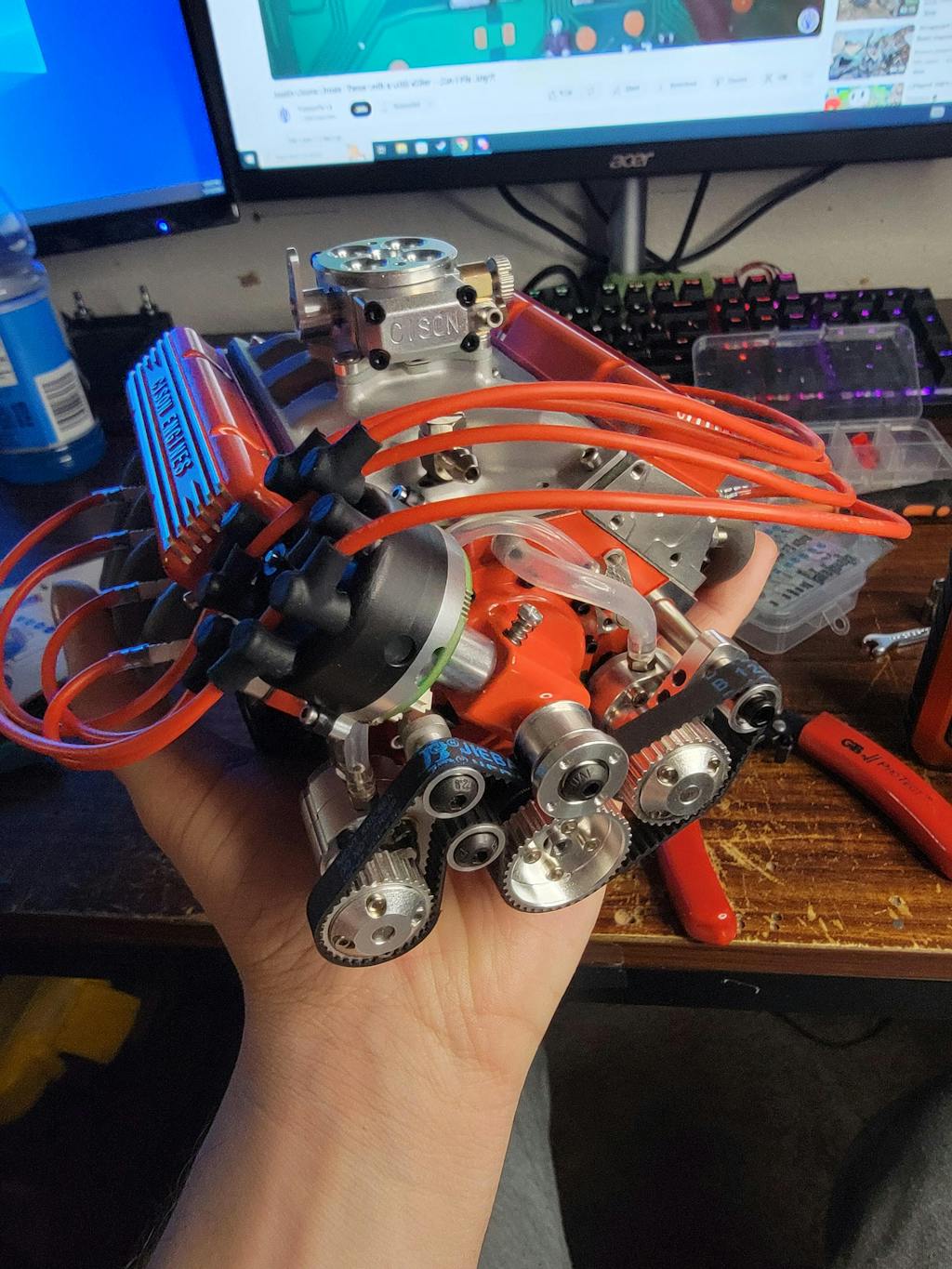 Building it you have this sense of awe, that something with such power, was made so small. The fact a litteral v8 engine can sit on my desk and rip away is still mind boggling to me. You chuckle a little thinking about it.