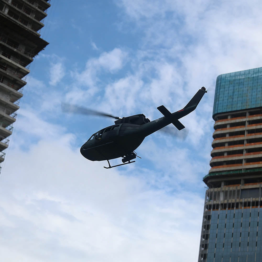 The scale size of the FLISHRC UH-1N Huey is impressive — it really dominates the flying field. And it performs! The flight is stable, responsive and satisfying. The GPS & IMU support hold altitude and position with ease. It’s serious fun for any outdoor flight enthusiast.