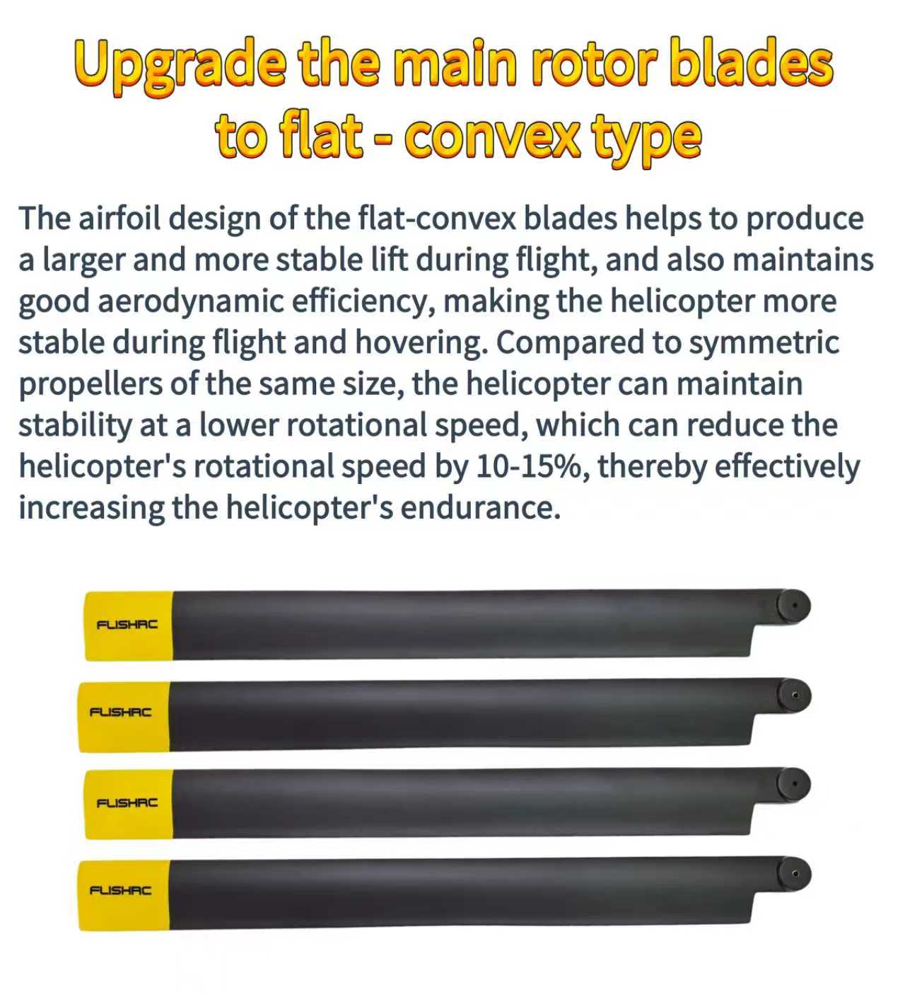 .Power Type: electric .Body Material: fiberglass .Main Rotor Diameter: 980mm .Tail Rotor Diameter: 168mm .Tail ESC: 35A tail ESC .Motor: FLISHRC high-performance main motor .Flight Control: FLISHRC L7 flight control .Motor Control: FLISHRC 85A ESC .Servo: FLISHRC FL390 semi-metal servo .Battery: 4500mAh 6S 60C .Recommended Environment: outdoor .Product Weight: 7000g .Package Weight: 13400g .Product Dimensions: 102 x 16 x 35cm .Package Dimensions: 114 x 42 x 28cm .Packing: Box .Ages:18+