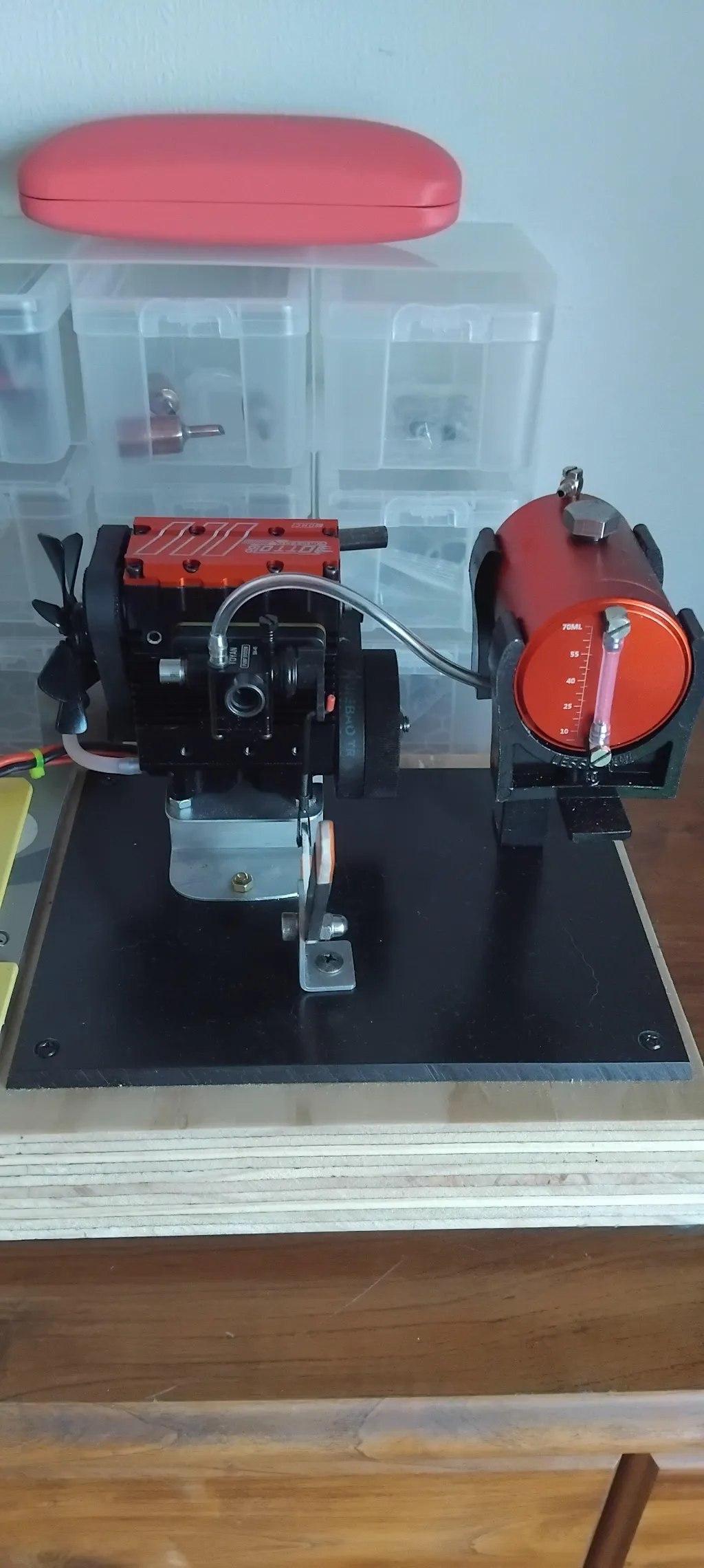 .Mini metal oil tank and 2×4mm oil pipe set with fixed stand.