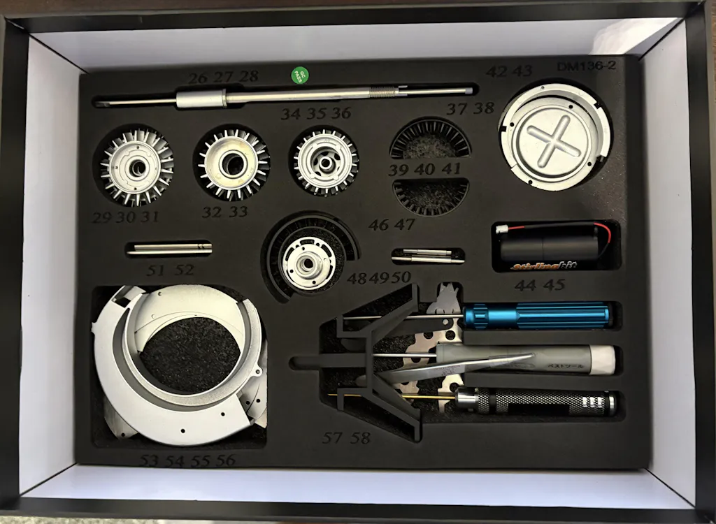 The scale metal parts simulate the engine's mechanical movement and design. The kit was meticulously packaged in a beautiful box with protected layers housing the parts. Tools are also included to help with the assembly. The instruction manual is very clear and easy to follow in the assembly sequence. We presented the built kit at the Cincinnati Scale Modelers show and the attendees found it very interesting and were intrigued by its quality and functionality. Attendees learned about turbofan functionality, and it was fun showing them the different throttle speeds available. One of our club members is a retired U.S. Navy helicopter pilot, and he flew helicopters powered by this engine. He was amazed at its accuracy and design quality.