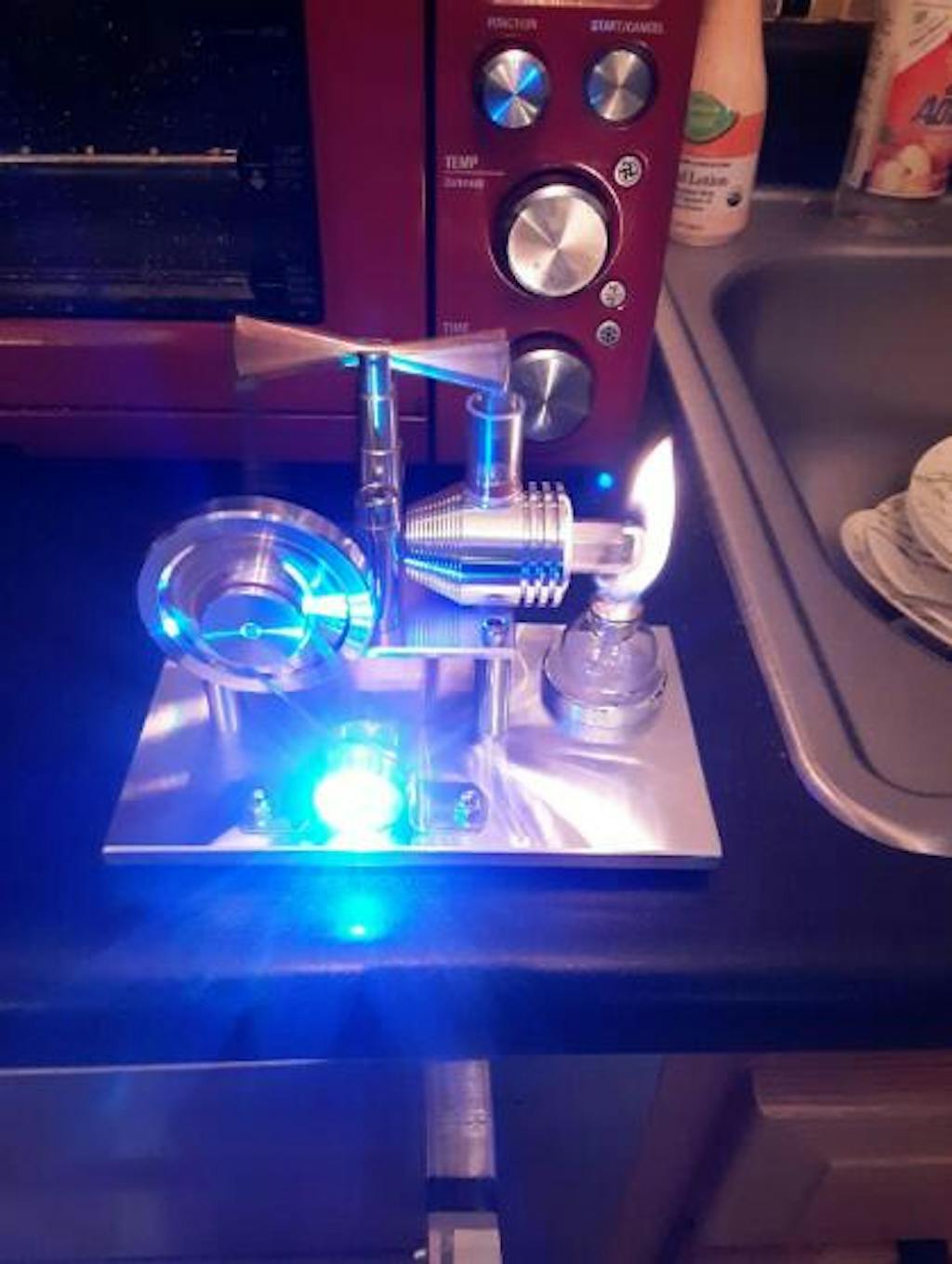 Stirling Engine Kit Hot Air Engine Motor Model Educational Toy Electricity Generator Colorful LED