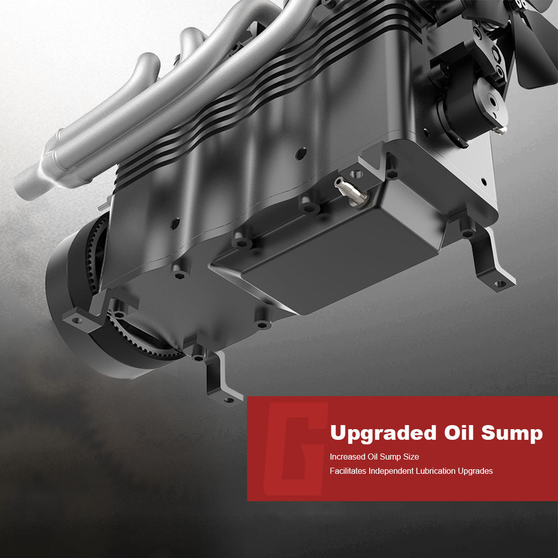 .Oil Sump Upgrade: Enlarged oil sump size for easy future independent lubrication upgrades.